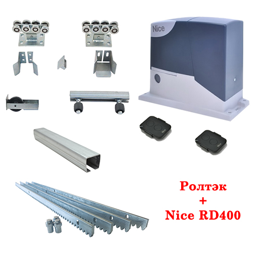 Комплект для откатных ворот с автоматикой Nice: комплектующие Ролтэк Микро